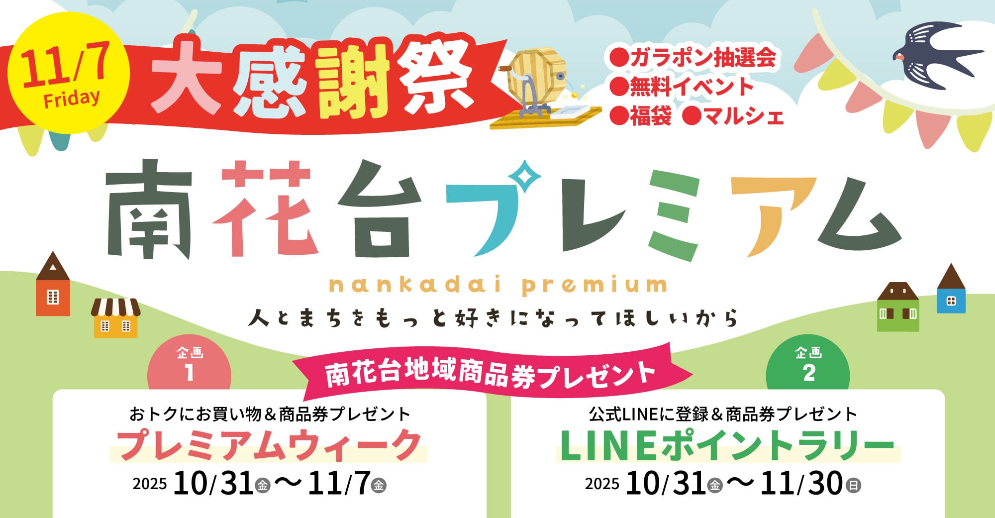 咲っくサポート事務局 2023.06.27 おしえて南花台 幼保連携型認定こども園 みのりこども園コロナ禍もようやく落ち着きを取り戻し、マスク姿が減ってきたように思います。 久しぶりとなる今回… 南花台投稿サポーター記者 2025.11.03 令和7年度 河内長野市市民表彰式 コノミヤテラス 2025.10.29 コノテラ通信11月号発行! 南花台自主防災委員会 2025.10.26 避難訓練に家族で参加を!! 幼保連携型認定子ども園みのりこども園 2025.10.21 10月18日(土)運動会 おしお幼稚園 2025.10.15 10/29(水) スクラップブッキングのワークショップを開催 スペランツァ大阪 2025.10.08 10月12日(日) vs 伊賀FCくノ一三重 13:00~キックオフ 南花台公民館 2025.10.03 南花台公民館「活動発表会」を開催します! 南花台まちづくり会 2025.09.21 【南花台コノミヤテラスこどもまつり】開催! 咲っく南花台事業者の会 2025.10.08 南花台プレミアム企画 7・8月分応募ハガキ抽選会を実施しましたお待たせしました!! 本日、7・8月開催南花台プレミアム企画 プレゼント企画の 応募ハガキ抽選… たいちろうのぱん 2025.11.05 11月も通常通りの営業です cafe Villanda 2025.11.05 11月のメニューとクリスマスランチ fastnail beautysalon 2025.11.04 flash gel フラッシュワンカラー ご新規様特別価格限定価格 てるてるぼうず 南花台店 2025.10.28 11/1(土)・11/2(日) 二日間の臨時休業のお知らせ 『un.de.fleur』アン・ド・フルール 2025.10.21 古希のお祝い花束のご注文 咲っく南花台事業者の会 2025.09.24 10/1(水) 南花台ひといきマルシェを開催します お米のニシバタ 2025.09.17 大阪府 大学生等若者への食費支援制度事業 麺坊万作 南花台本店 2025.09.10 9月の営業カレンダー
