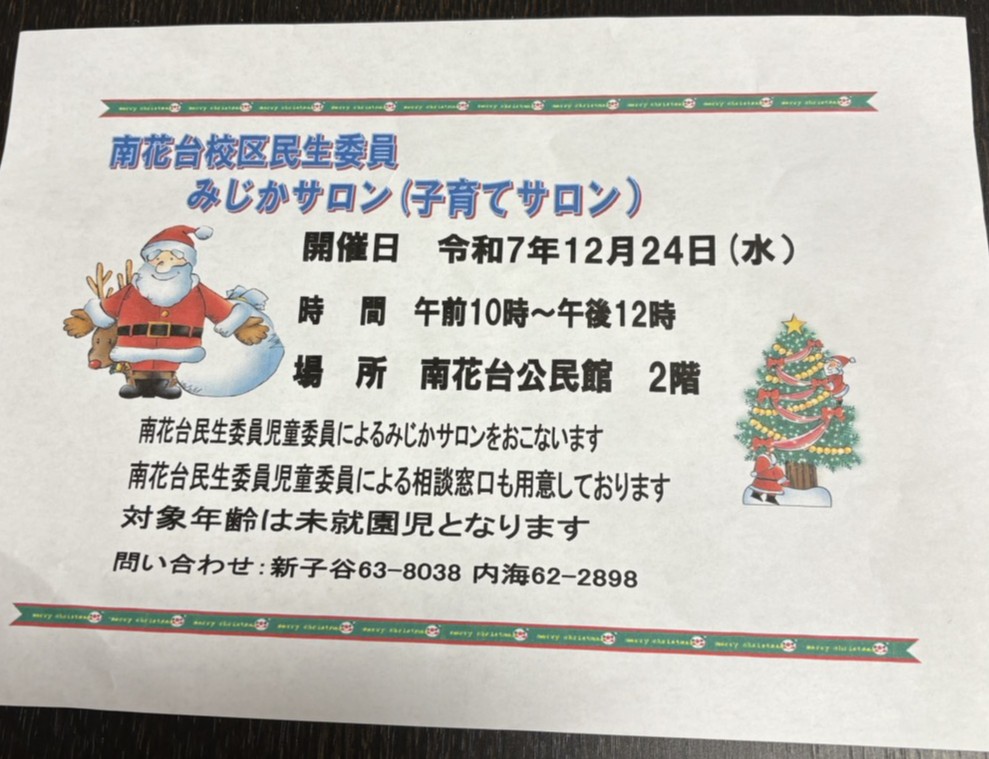 ☆12月24日(水) 午前10時~12時 南花台公民館 2階