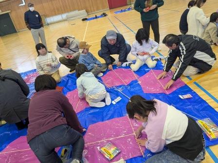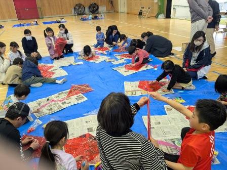 凧作り・凧揚げ 2026.2.22 南花台こどもくらぶの情報を見る 2026年2月22日(日)、南花台小・中学校の体育館と運動場で凧作りと凧揚げを行いました。 小学生23人と特別参加の幼児3人は、お父さん、お母さんやサポーターの方に手伝ってもらいながら、ダイヤ凧(低学年)、六角凧(中学年)、カイト凧(高学年)を作りました。 完成後、運動場で凧揚げ。 風はあまりありませんでしたが、初夏を感じさせる暖かい青空の下、子ども達は運動場を駆け回って、凧揚げを楽しんでいました。 体育館で凧作り 幼児と低学年はダイヤ凧 中学年は六角凧 高学年はカイト凧 運動場で凧揚げ